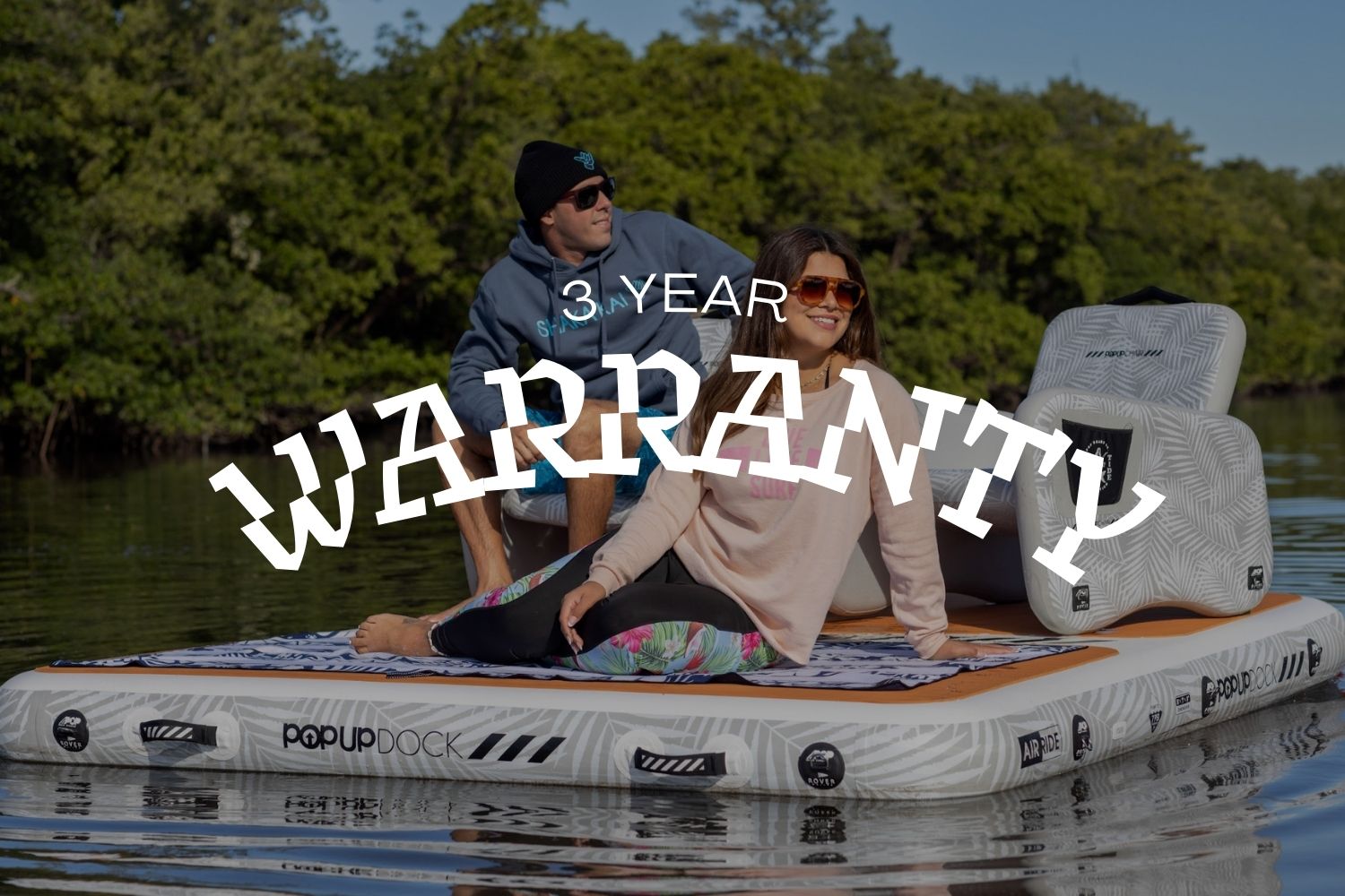 Your POPUP DOCK comes ready for inflation with a complete setup: Dock, double-action pump, and carrying strap. And to keep the good times rolling, it’s protected by a 3-year warranty. Around here, we call that the Radical Package.
